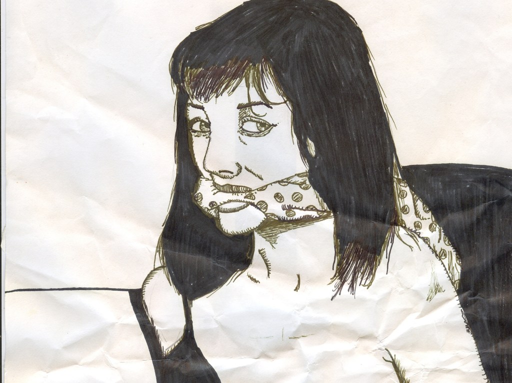 The sketch is done in black ink. It’s very detailed and well-drawn. I recognize the face as belonging to her next door neighbor, Miranda Bennett.